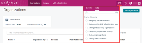 The self-guided onboarding feature is designed for new global admins and provides on-demand interactive help. By presenting pop-ups, the user is introduced to key Graphus features and how to use them.![]()