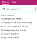 - Show Me: Allows you to replay the onboarding tasks at any time after you have completed them on the Tasks tab. You can filter the tasks displayed by entering a term in the Search field.