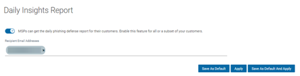 - Save as Default: Configure and save the settings by clicking the Save as Default button. This will save the settings but will not apply them to any of your existing organizations. You can return to the settings page later and apply these settings to your existing organizations by clicking the Apply button. You will have the option of choosing a subset or all of your organizations. Save as Default will, however, apply these settings automatically to any new organizations onboarding on Graphus in the future.