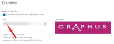 Logo Preview shows the default Graphus logo. You can add your logo by putting the file in the Logo field. The image file should be in JPG, JPEG, PNG, or GIF format. The image resolution should be within 400 x 200. As soon you upload the logo, you can preview the logo on the right side. ![]()