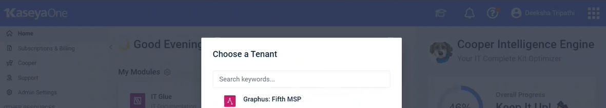This upgraded version of Login with KaseyaOne allows multiple tenant registrations under the same KaseyaOne company. You will be able to add multiple Graphus companies/tenants to one KaseyaOne company. Users with the necessary accounts in these Graphus companies can single sign on to any of these companies.