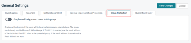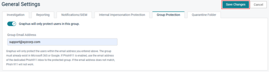 By default, Graphus protects all of an organization's users. However, with the Group Protection feature, customers can provide email protection to a subset of organization users. First, you identify a subset of users to protect. Then, add those users to a group in Microsoft 365 or Google Workspace. Finally, configure the group in Graphus.
