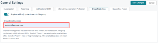 IMPORTANT If you are using Phish911, you must add the email address of the dedicated Phish911 inbox to the protected group. Otherwise, Phish911 will not work.