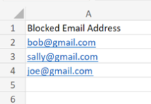 - Open the template and in the Blocked Email Address column, enter each email address you want to block. Enter one email address per cell.