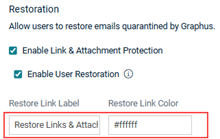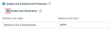 - If desired, you can customize this link by specifying a label and selecting a color in the Restore Link Label and Restore Link Color fields.