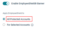 - By default, EmployeeShield® will be rolled out for all protected inboxes. You can enable EmployeeShield® for selected users only by selecting the For Selected Accounts option and entering the applicable email addresses.
