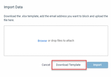 - In the Import Data modal, browse to, select, and open the saved template. Or, you can use the drag-and-drop feature.