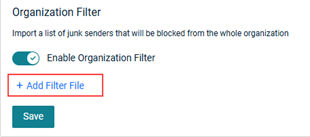 The Organization Filter allows administrators to manage a list of senders to block at the organization level. This filter applies to all email recipients in the organization. Meaning, that all emails sent from the addresses configured in the filter are blocked globally.