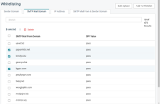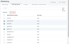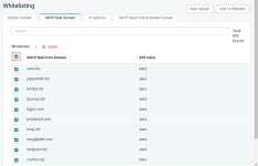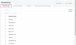 - The Sender Domain tab is selected automatically and lists the entries that were whitelisted previously.