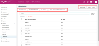 Graphus will skip processing any inbound email with attributes that match the whitelisted parameters. No Quarantine or EmployeeShield® functionalities in Graphus will be applied to such emails. There are four different types of whitelisting capabilities provided at the organization level.