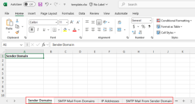 - Select the worksheet for the applicable whitelisting type and enter the whitelisting criteria. You can enter criteria on as many worksheets as desired. Save the template.