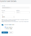 It is recommended that you enable two-factor authentication when adding a new user. Two-factor authentication adds an additional layer of security to the user's Graphus account. It generates a time-based one-time password (TOTP), referred to as an authentication code, that the user is required to enter when logging into Graphus.