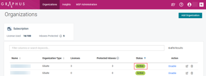 For more information, refer to the article Adding and activating an organizationand the Graphus Activation Guide for Google Workspace