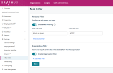 - The Personal Filter and Organization Filter are now available on the Mail Filter page.