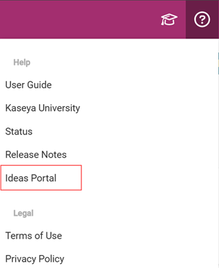 A new link to the Kaseya Ideas Portal has been added to the Graphus Help menu, making it easier for you to submit product improvement and new feature suggestions, as well as provide feedback on ideas submitted by others.![]()